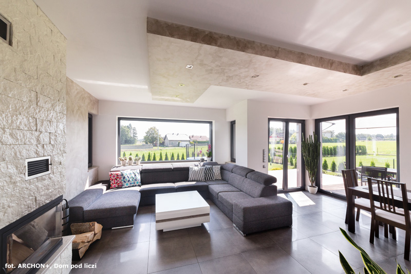 „Dom pod liczi” zainspirował nas głównie swoją kompaktową bryłą z licznymi oknami, dzięki temu wnętrze jest pięknie doświetlone, a duża ilość wpadającego słońca dodatkowo dogrzewa pomieszczenia. Wybraliśmy projekt o lustrzanym odbiciu, po to, aby umiejscowienie największych przeszkleń było spójne z usytuowaniem naszego budynku względem stron świata. Dzięki temu zostały one skierowane głównie na wschód i południe. Główną atrakcją projektu „Domu pod Liczi” jest według nas panoramiczne okno w salonie, które do dziś wzbudza zachwyt gości i to właśnie ono ostatecznie zadecydowało o wyborze tego projektu.