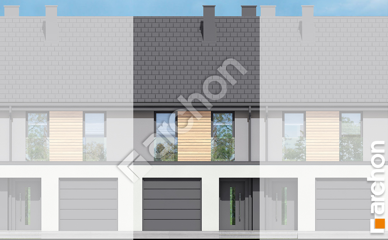 do zabudowy szeregowej z poddaszem, z garażem jednostanowiskowym