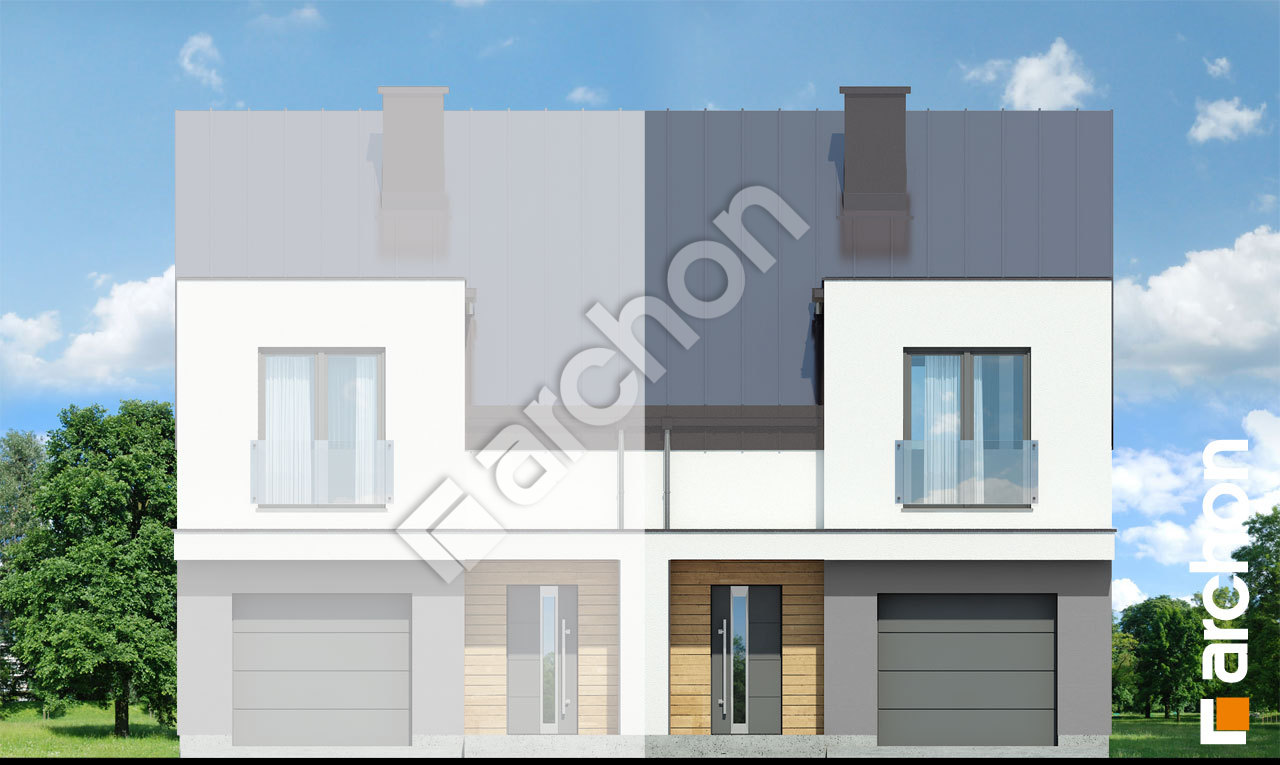 pobierz obrys budynkuProsty i elegancki dom przeznaczony do zabudowy bliźniaczej. Współczesny styl bryły podkreślają prostokątne wykusze ze szklanymi balustradami oraz duże przeszklenia. Część dzienną na parterze tworzy jasny salon połączony z otwartą kuchnią, a duży taras stanowi jej atrakcyjne przedłużenie. Strefa gospodarcza to garaż dostępny z wiatrołapu. Na poddaszu mieszczą się trzy wygodne pokoje doświetlone drzwiami balkonowymi oraz łazienka. Przy sypialni rodziców zaprojektowano garderobę, a w pokojach dzieci przewidziano miejsca na duże szafy.