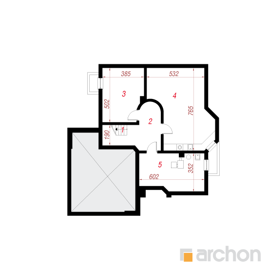 • Likwidacja wykusza, likwidacja lub zamiana na pustaki szklane okien w garażu i przesunięcie okien połaciowych na poddaszu.