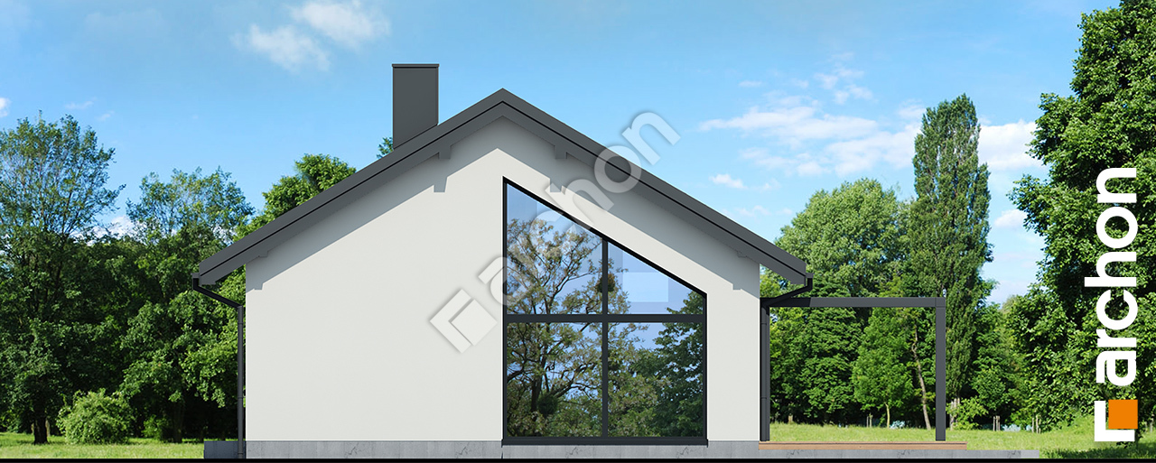 pobierz obrys budynku„Dom w kosaćcach 16 (A)” to nowoczesny projekt domu jednorodzinnego parterowego, który przyciąga uwagę elegancką bryłą i wyrazistymi detalami architektonicznymi. Budynek przykryty dwuspadowym dachem prezentuje spójną, współczesną formę, a wejście w podcieniu zostało efektownie podkreślone wnęką wykończoną okładziną drewnianą, nadając elewacji przyjazny i reprezentacyjny charakter. W strefie dziennej uwagę przyciąga spektakularne okno na elewacji bocznej, które doskonale doświetla wnętrze i podkreśla jego nowoczesny styl. Centralnym punktem domu jest przestronna, dwukondygnacyjna strefa dzienna z salonem o powierzchni powyżej 30 m², jadalnią z efektownym otwarciem do połaci dachu oraz kuchnią o powierzchni przekraczającej 12 m², wyposażoną w funkcjonalny, minimum trzyosobowy półwysep i praktyczną spiżarnię zlokalizowaną tuż obok. Z salonu prowadzi wyjście na taras osłonięty pergolą, który stanowi naturalne przedłużenie przestrzeni wypoczynkowej. Układ funkcjonalny obejmuje pięć pokoi, zapewniając komfortową przestrzeń dla domowników oraz możliwość aranżacji dodatkowego pomieszczenia jako gabinetu lub pokoju gościnnego. Program użytkowy uzupełniają dwie łazienki oraz kotłownia z wydzieloną pralnią, zwiększająca wygodę codziennego użytkowania. „Dom w kosaćcach 16 (A)” to projekt domu, który w kolekcji projekty domów wyróżnia się nowoczesną formą, imponującą przestrzenią strefy dziennej i przemyślanym układem funkcjonalnym.