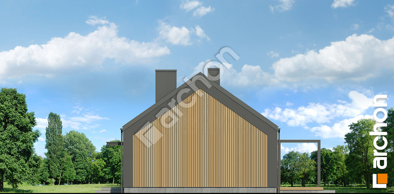 pobierz obrys budynkuMała parterówka dołącza do rodziny projektów „Domów w kruszczykach” i zwraca uwagę Inwestorów atrakcyjną bryłą w stylu nowoczesnej stodoły. Elewacja zaprojektowana została w kompozycji kolorów szarości i drewna, a lekkości wizualnej projektowi dodają nowoczesne przeszklenia. Na uwagę zasługuje nieszablonowe wykończenie elewacji i efektowne przeszklenie ściany szczytowej. Prosta bryła idealnie koresponduje z bezokapowym dachem dwuspadowym, który pokryto płaską dachówką w kolorze antracytu. Na frontowej ścianie domu zaplanowano praktyczne zadaszenie, które ochrania strefę wejściową przed opadami atmosferycznymi. Wiatrołap z pojemnymi szafami otwiera dostęp do funkcjonalnego wnętrza z komfortowym układem części nocnej i dziennej. Słoneczny salon oferuje wygodną kanapę narożną z widokiem na klimatyczny kominek. Dzięki otwarciu stropu do połaci dachowej nad salonem i jadalnią wnętrze zyskało na przestronności. Przedłużeniem części wypoczynkowej jest taras, na którym świetnie odnajdzie się ogrodowy zestaw do relaksu lub kącik kawowy. Jadalnia płynnie łączy się z jasną kuchnią. Do układu tej części dołącza nowoczesna łazienka, a kotłownia posiada funkcję pralni. Strefa nocna obejmuje trzy wygodne sypialnie, w tym dwie z możliwością wyjścia na taras. Do wspólnego użytku rodziny pozostają łącznie dwie łazienki. Projekt „Domu w kruszczykach 10” dołącza do kategorii: projekty domów nowoczesnych, projekty małych domów, projekty domów bez garażu, projekty domów parterowych, projekty domów w stylu nowoczesnej stodoły.