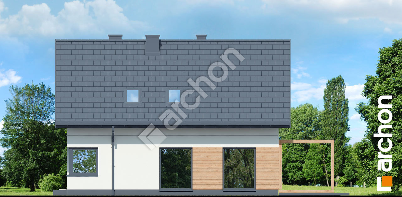 pobierz obrys budynkuKolejny projekt z rodziny „Domów w malinówkach” to ekonomiczny, nowoczesny budynek z poddaszem użytkowym, polecany do realizacji na wąskich działkach. Atrakcyjnie prezentuje się jego prosta bryła przekryta dwuspadowym dachem, z elegancką białą elewacją, łączącą elementy drewnianej okładziny i grafitowego tynku, który wraz ze stolarką i dachówką w antracytowym odcieniu podkreśla biel elewacji. Na frontowej ścianie szczytowej, w podcieniu wyróżnionym drewnianą okładziną i zaakcentowanym grafitową opaską, usytuowano wejście główne, prowadzące przez wiatrołap z wnęką na szafę do otwartej strefy dziennej. Salon to część wypoczynkowa z narożną kanapą, kominkiem i kącikiem TV, a jadalnia oferuje miejsce na duży stół obiadowy. Przestrzeń doskonale doświetlają dwa okna na bocznej ścianie i szklany przesuw, łączący wnętrze z dużym tarasem, osłoniętym drewnianą pergolą, który zachęca do relaksu na świeżym powietrzu. Otwartą, funkcjonalnie zaprojektowaną kuchnię, z usytuowaną pod schodami spiżarnią, oddziela od pozostałej części dziennej barek śniadaniowy z blatem roboczym. Kuchnia dysponuje indywidualnym wyjściem na taras. Narożne okno doświetla dodatkowy pokój, który spełni funkcję gabinetu lub pokoju gościnnego, na jego osi usytuowana jest łazienka z prysznicem. Sąsiaduje z nią, dostępna z wiatrołapu, kotłownia gazowa połączona z pralnią. W strefie prywatnej na poddaszu do ścian szczytowych przylegają trzy ustawne pokoje doświetlone nowoczesnymi portfenetrami ze szklanymi balustradami. Usytuowany od frontu pokój rodziców to wygodna sypialnia z prywatną garderobą. W dwóch pokojach dzieci, zlokalizowanych po przeciwnej stronie schodów przewidziano miejsce na łóżka, biurka w pobliżu okien i szafy do przechowywania. Z korytarza poddasza dostępna jest ponadto łazienka, której program obejmuje wannę i prysznic oraz dodatkowa garderoba. „Dom w malinówkach 26” wzbogaca kolekcje: projekty domów nowoczesnych, projekty domów z poddaszem użytkowym, projekty domów z gabinetem na parterze.