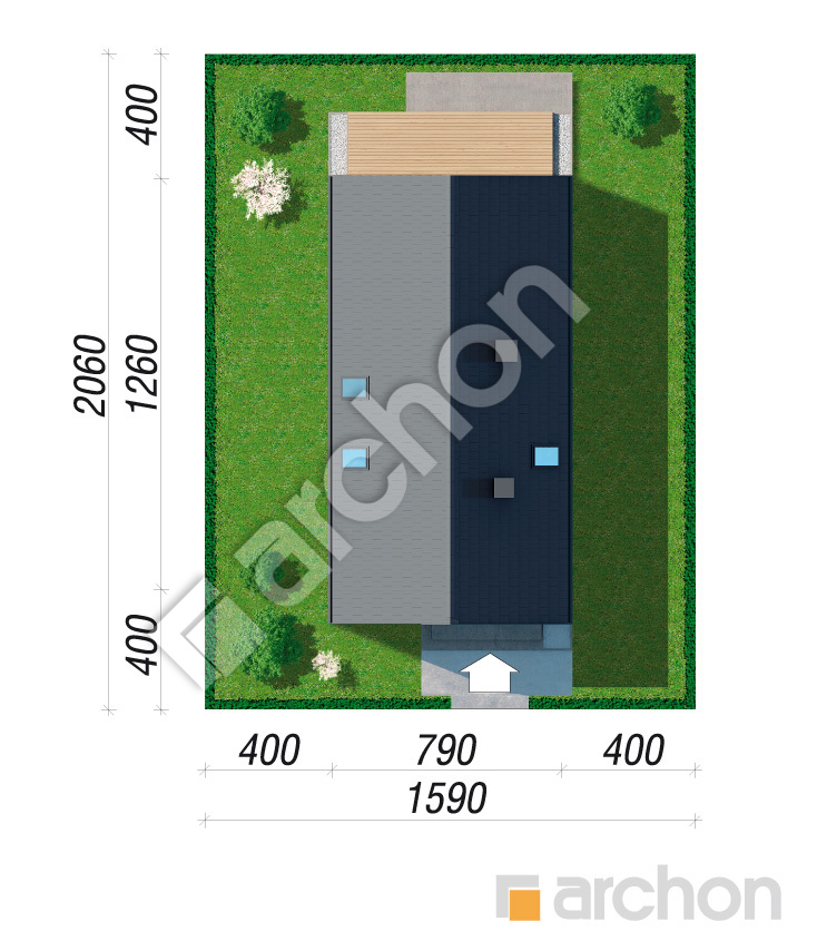 • Min. wymiary działki 15,9 x 20,6 m