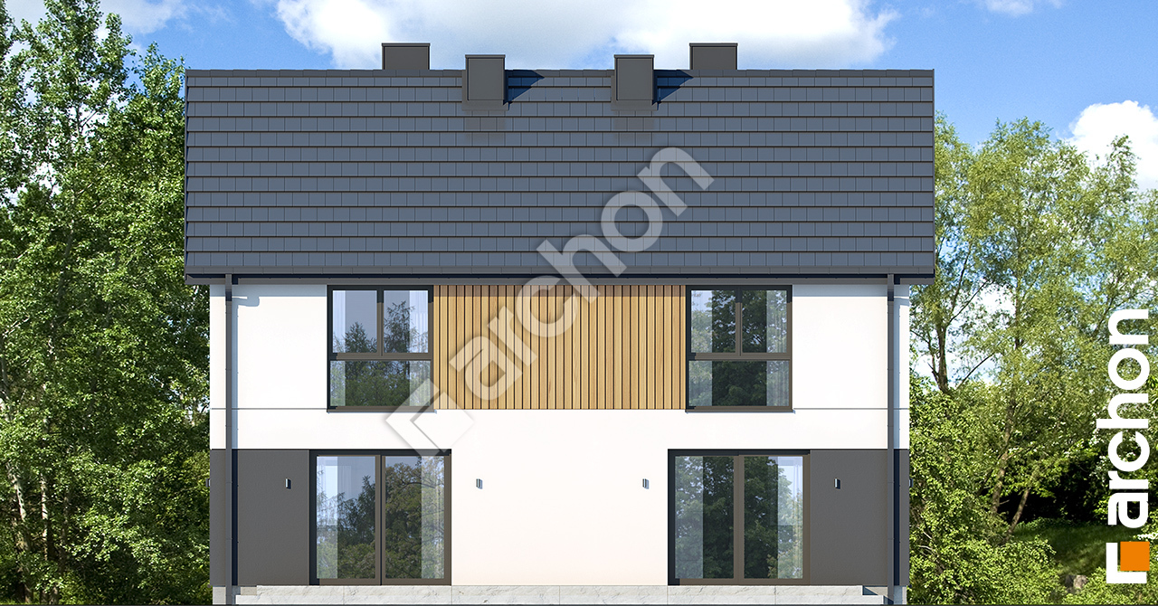 Projekt domu Dom w modrakach 4 (R2) to propozycja stworzona z myślą o deweloperach poszukujących pewnego, funkcjonalnego i ekonomicznego rozwiązania oraz o przyszłych mieszkańcach, dla których liczy się komfort i przemyślany układ. Ten jednorodzinny dom dwulokalowy, w którym oba lokale znajdują się obok siebie, oferuje idealną alternatywę dla mieszkania w bloku, a hasło "niewielki metraż = niewielki kredyt" trafnie oddaje jego największą zaletę rynkową. Nowoczesna stylistyka, dwuspadowy dach, prosta i szybka realizacja oraz optymalny program funkcjonalny na 64 m² powierzchni użytkowej każdego z mieszkań sprawiają, że projekt domu doskonale wpisuje się w oczekiwania współczesnych inwestycji. Każdy lokal zapewnia wygodny wiatrołap, ergonomiczną kuchnię, otwartą strefę dzienną z kominkiem, komfortową łazienkę, dużą toaletę z miejscem na pralkę, suszarkę i kocioł gazowy, dwie dwuosobowe sypialnie oraz dodatkowy pokój na parterze, dzięki czemu odpowiada zarówno potrzebom singla, pary, jak i rodziny 2+2. Poddasze użytkowe z wysoką ścianką kolankową eliminuje problem skosów, zapewniając pełną funkcjonalność pomieszczeń, a taras oferuje przyjemną przestrzeń do wypoczynku. Dom w modrakach 4 (R2) to projekt domu, który pozwala deweloperowi osiągnąć szybki zwrot z inwestycji dzięki atrakcyjnej cenie budowy, a mieszkańcom gwarantuje wygodne, współczesne i lubiane miejsce do życia, idealnie dopasowane do realnych potrzeb rynku.