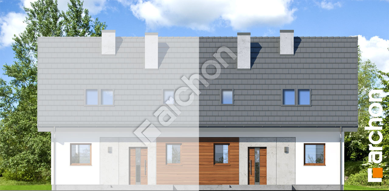 pobierz obrys budynkuPrezentujemy Państwu prosty i ekonomiczny w budowie projekt domu do zabudowy bliźniaczej, który wyróżnia się współczesnym stylem wykończenia oraz funkcjonalnym układem wewnętrznym. Aranżacja zewnętrzna opiera się na kontrastowym połączeniu jasnego tynku i szarego betonu architektonicznego oraz ocieplającej elewację okładziny drewnianej współgrającej kolorystycznie ze stolarką okienna i drzwiową.