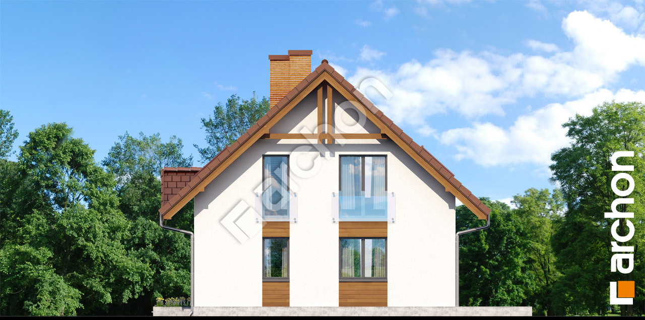 pobierz obrys budynkuProjekt domu z poddaszem użytkowym, który wyróżnia się kreatywnie zaprojektowanym układem funkcjonalnym, wykorzystującym całą powierzchnię niedużego domu. Należy do popularnych kolekcji: projekty domów małych oraz projekty domów tanich w budowie. Na ekonomikę realizacji wpływa prosta forma bryły zwieńczona dwuspadowym dachem. Elegancko prezentuje się strefa wejściowa z praktycznym zadaszeniem, którą zaakcentowano naturalną, drewnianą okładziną. Nowoczesny charakter domu podkreślają portfenetry w ścianach szczytowych, zabezpieczone szklanymi balustradami. Zapewniają one dobre doświetlenie pokoi na poddaszu. Część dzienną tworzy salon z funkcją jadalni oraz kuchnia. Otwarcie na taras powiększa przestrzeń wypoczynkową i płynnie łączy dom z otaczającym ogrodem. Centralnie usytuowany kominek oddziela salon od kuchni, w której przewidziano długi blat roboczy oraz funkcjonalnie zaaranżowaną zabudowę z dużą ilością miejsc do przechowywania. Dodatkowy pokój, obok którego znajduje się łazienka z prysznicem, sprawdzi się jako pokój gościnny. Z wiatrołapu dostępna jest kotłownia z funkcją pralni. Widoczne z salonu schody prowadzą do strefy prywatnej na poddaszu, która spełnia warunki komfortowego użytkowania. Zaprojektowano tu sypialnię rodziców oraz dwa pokoje dla dzieci. Program uzupełnia łazienka z narożną wanną i kabiną prysznicową. „Dom w poziomkach ver.2” należy także do kategorii: projekty domów dwuetapowych i daje Inwestorowi możliwość rozłożenia kosztów realizacji inwestycji.