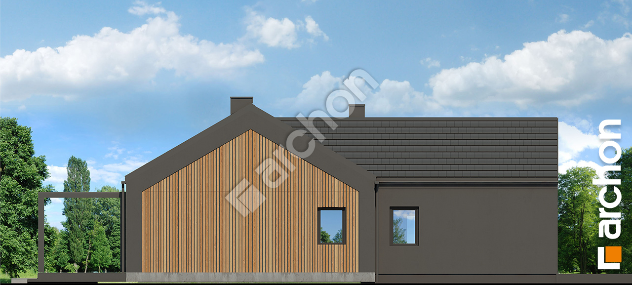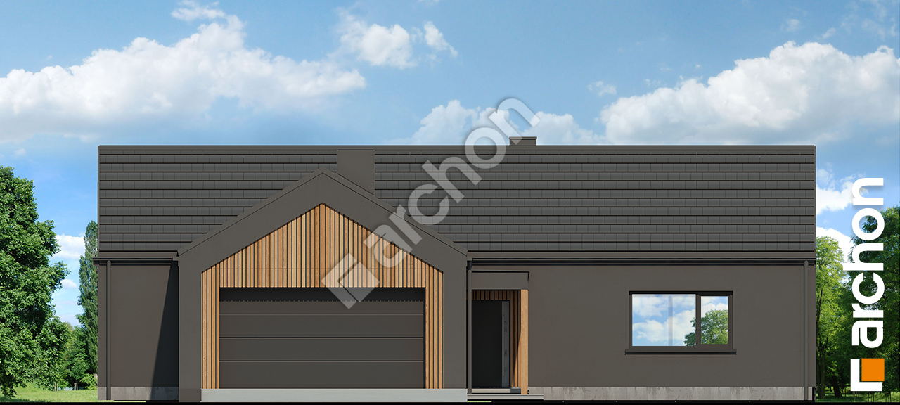 pobierz obrys budynku„Dom w rarytasach 5 (G2E)” to nowoczesny projekt domu jednorodzinnego parterowego, który wyróżnia się wyrazistą, bezokapową bryłą oraz odważnymi rozwiązaniami architektonicznymi. Dwuspadowy dach pozbawiony okapów podkreśla minimalistyczny charakter budynku, a efektownie zadaszone wejście stanowi mocny akcent elewacji frontowej. Kompozycja elewacji oparta na zestawieniu ciemnego tynku z naturalnymi okładzinami drewnianymi nadaje bryle elegancji i nowoczesnej dynamiki. Od strony frontu uwagę przyciąga dwustanowiskowy garaż wysunięty przed lico elewacji, który porządkuje strefę wjazdową i wzmacnia geometryczny charakter całego założenia. Wnętrze domu zaprojektowano z myślą o przestrzeni i świetle – strefa dzienna obejmuje salon i jadalnię z efektownym otwarciem do połaci dachu, co tworzy wrażenie dwukondygnacyjnej przestrzeni i nadaje wnętrzu reprezentacyjny charakter. Salon o powierzchni przekraczającej 30 m² połączono z nowoczesną kuchnią z wyspą oraz praktyczną spiżarnią, tworząc wygodną i spójną przestrzeń codziennego funkcjonowania. Z części dziennej oraz ze wszystkich sypialni zaplanowano bezpośrednie wyjścia na taras osłonięty pergolą, co pozwala na pełne wykorzystanie strefy ogrodowej i podkreśla otwarty charakter domu. Program użytkowy obejmuje cztery pokoje, w tym komfortowe sypialnie, dwie łazienki oraz kotłownię z wydzieloną pralnią. W salonie przewidziano miejsce na kominek, który wprowadza przytulny akcent do nowoczesnej przestrzeni. Projekt domu uwzględnia zastosowanie wentylacji mechanicznej z odzyskiem ciepła, co podnosi standard energetyczny budynku. „Dom w rarytasach 5 (G2E)” to projekt domu, który w kolekcji projekty domów wyróżnia się nowoczesną formą, spektakularną strefą dzienną i przemyślanym układem funkcjonalnym, idealnym dla wymagających inwestorów.
