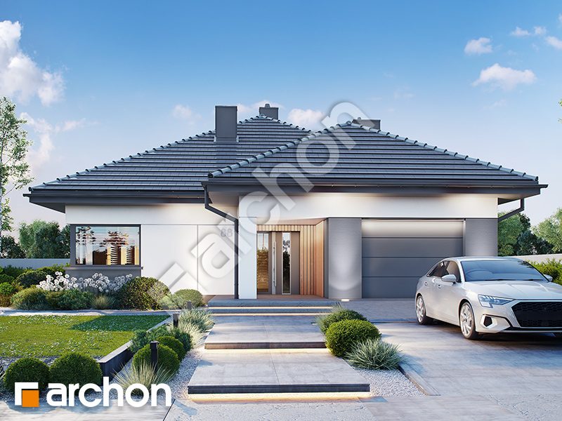 pobierz obrys budynku„Dom w renklodach 15 (G)” to nowoczesny projekt domu jednorodzinnego parterowego, który łączy ponadczasową formę z funkcjonalnością dopasowaną do codziennych potrzeb. Zwarta bryła przykryta czterospadowym dachem prezentuje elegancki i uniwersalny charakter, dzięki czemu projekt domu doskonale wpisuje się zarówno w zabudowę miejską, jak i w otoczenie podmiejskie. Wbudowany garaż jednostanowiskowy, wysunięty przed elewację frontową, został wygodnie połączony z częścią mieszkalną, co usprawnia codzienne użytkowanie i komunikację wewnętrzną. Wnętrze domu zostało zaprojektowane z myślą o maksymalnym wykorzystaniu światła i relacji z ogrodem, co podkreślają duże przeszklenia od strony tarasu oraz szerokie wyjście, które płynnie łączy salon z zewnętrzną strefą wypoczynkową w podcieniu. Przestronna strefa dzienna obejmuje salon o powierzchni powyżej 30 m² z kominkiem, jadalnię oraz dużą kuchnię o powierzchni przekraczającej 12 m², wyposażoną w funkcjonalną wyspę i uzupełnioną praktyczną spiżarnią. Układ funkcjonalny obejmuje cztery pokoje, zapewniając komfortową przestrzeń dla domowników, a całość uzupełniają łazienka, osobna toaleta oraz kotłownia z wydzieloną pralnią. „Dom w renklodach 15 (G)” to projekt domu, który w kolekcji projekty domów wyróżnia się harmonijną architekturą, doskonałym doświetleniem wnętrz i rozwiązaniami sprzyjającymi wygodnemu stylowi życia.