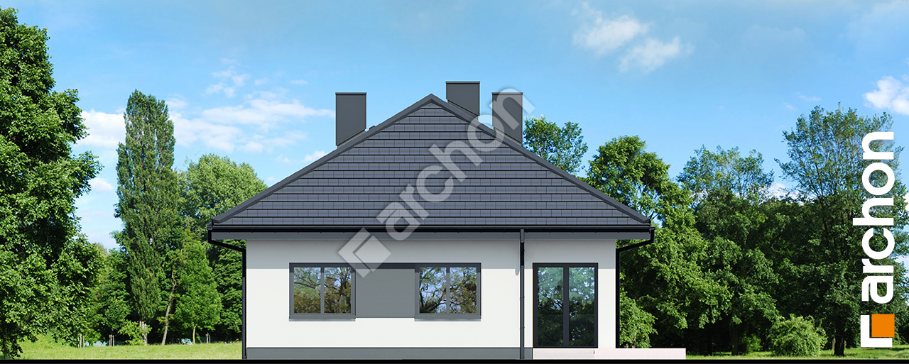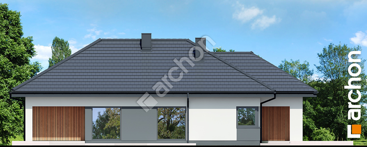 „Dom w renklodach 41 (G)” to nowoczesny projekt domu jednorodzinnego parterowego, który przyciąga uwagę efektowną bryłą przykrytą czterospadowym dachem. Harmonijne proporcje oraz starannie zaprojektowane detale architektoniczne nadają budynkowi elegancki i reprezentacyjny charakter. Garaż jednostanowiskowy został wysunięty przed elewację frontową i wbity w bryłę budynku, co podkreśla nowoczesny styl oraz porządkuje strefę wjazdową. Wejście główne zostało praktycznie zadaszone, zapewniając wygodę codziennego użytkowania, natomiast od strony ogrodu zaprojektowano taras w podcieniu, który tworzy komfortową, osłoniętą przestrzeń wypoczynkową. Wnętrze domu zostało zaplanowane z myślą o funkcjonalności i komforcie rodziny. Przestronny salon z kominkiem stanowi centralny punkt części dziennej, łącząc się z jadalnią oraz kuchnią wyposażoną w duży, minimum trzyosobowy półwysep. Układ obejmuje cztery pokoje, w tym sypialnię główną z przyległą garderobą, która podnosi standard codziennego użytkowania. Program funkcjonalny uzupełniają łazienka, osobna toaleta oraz kotłownia z wydzieloną pralnią, zapewniająca wygodne zaplecze gospodarcze. „Dom w renklodach 41 (G)” to projekt domu, który w kolekcji projekty domów wyróżnia się spójną architekturą, praktycznymi rozwiązaniami oraz estetyką odpowiadającą współczesnym oczekiwaniom inwestorów poszukujących komfortowego domu parterowego.