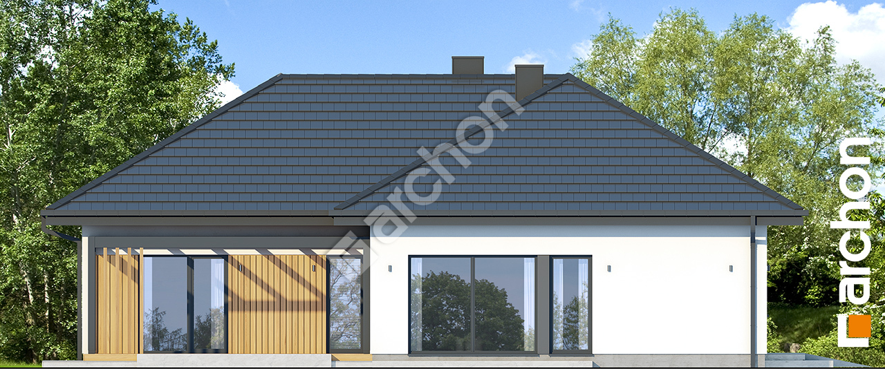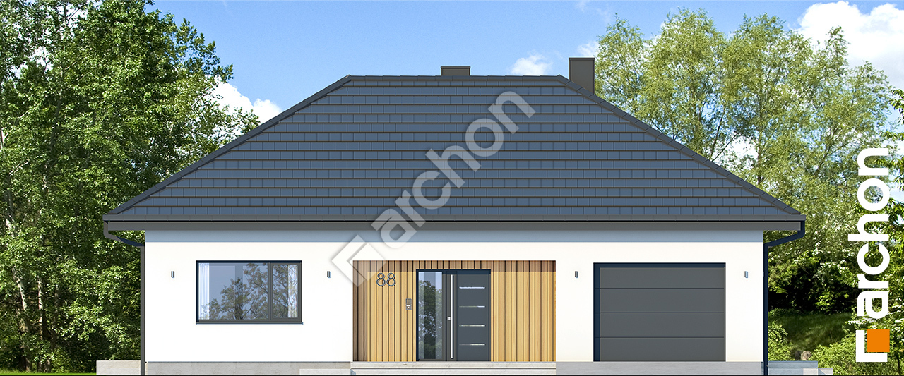 pobierz obrys budynku„Dom w roselinach (GE)” to projekt domu, który łączy nowoczesną elegancję z ponadczasowym minimalizmem, tworząc wyjątkowy bungalow o dopracowanej estetyce i doskonałej funkcjonalności. Jasna, klasyczna elewacja zestawiona z grafitowym dachem i stolarką tworzy spójną, minimalistyczną paletę kolorystyczną, którą ocieplają pionowe deski elewacyjne w naturalnym odcieniu drewna, nadając bryle subtelny prestiż i przytulny charakter. Funkcjonalny podcień wejściowy prowadzi do strefy wejściowej z eleganckimi drzwiami z naświetlem, za którymi znajduje się przestronny wiatrołap, zapewniający wygodne codzienne użytkowanie. Garaż jednostanowiskowy, w pełni wkomponowany w bryłę domu, połączono z częścią mieszkalną praktyczną garderobą. W sercu domu znajduje się doskonale zaprojektowana kuchnia z wysoką zabudową, dużym półwyspem z miejscem do jedzenia oraz przylegającą spiżarnią. Salon otwarto na ogród dzięki dużemu, przesuwnemu przeszkleniu, które prowadzi na taras osłonięty imponującą pergolą, tworząc idealną przestrzeń do wypoczynku. W części nocnej przewidziano trzy ustawne pokoje, w tym główną sypialnię z własną garderobą. Dwie komfortowe łazienki wyposażono w nowoczesne prysznice, a jedna z nich dodatkowo oferuje wolno stojącą wannę oraz praktyczny zestaw umywalek. W projekcie domu uwzględniono również pralnię umieszczoną w obszernym pomieszczeniu gospodarczym. Kominek w strefie dziennej wspomoże system ogrzewania a wentylacja mechaniczna z odzyskiem ciepła to odpowiedź na współczesne standardy energooszczędności. „Dom w roselinach (GE)” to przemyślany, parterowy dom jednorodzinny z dachem czterospadowym, który harmonijnie łączy nowoczesny styl, funkcjonalny układ oraz dopracowane detale, tworząc propozycję idealną dla osób ceniących estetykę i wygodę w ramach spójnych, współczesnych projektów domów.