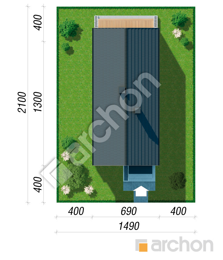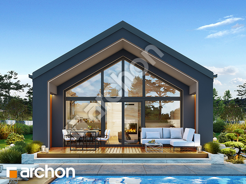 pobierz obrys budynkuDom w supertuniach 2 (E) to nowoczesny projekt domu jednorodzinnego o parterowym układzie, który łączy prostą, uporządkowaną bryłę z efektowną architekturą strefy ogrodowej. Jego współczesny charakter podkreśla dwuspadowy dach bez okapów, elegancka elewacja oraz duże przeszklenie ściany szczytowej, pięknie otwierające salon na taras i ogród. Przestronna strefa dzienna została zaprojektowana jako reprezentacyjne serce domu – salon otwarty do dachu tworzy wrażenie wyjątkowej przestrzeni, a kominek wprowadza przytulny klimat wypoczynku. Kuchnia z wyspą pozostaje wygodnie połączona z jadalnią i salonem, sprzyjając codziennemu życiu rodziny oraz spotkaniom z bliskimi. Zadaszony taras, osłonięty przedłużonym okapem, stanowi naturalne przedłużenie wnętrza i komfortową przestrzeń relaksu na świeżym powietrzu. Poza strefą dzienną program funkcjonalny obejmuje jeszcze dwa pokoje, w tym jeden z własną garderobą, łazienkę, osobną toaletę oraz pomieszczenie gospodarcze. Ekonomiczny metraż został racjonalnie wykorzystany, dzięki czemu projekt domu oferuje wygodę użytkowania, a jednocześnie sprzyja prostej realizacji i elastycznemu wprowadzaniu zmian. Uproszczona konstrukcja oraz wentylacja mechaniczna z odzyskiem ciepła podnoszą walory energooszczędne budynku. Wśród propozycji ARCHON+ Dom w supertuniach 2 (E) dedykowany jest również na wąskie działki o szerokości zaledwie około 15 m.