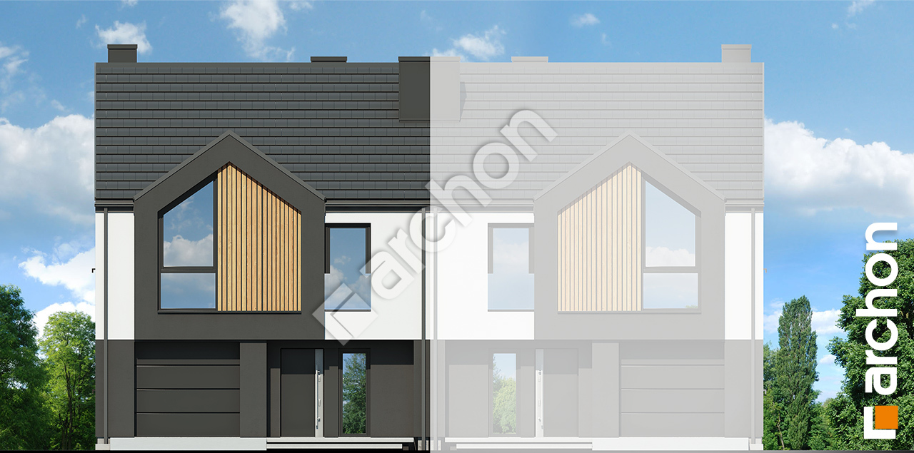 pobierz obrys budynkuProjekt domu „Dom w szachownicach (GB)” to nowoczesny projekt domu do zabudowy bliźniaczej, zaprojektowany zarówno dla klienta indywidualnego, jak i dla dewelopera. Bryła budynku została zaprojektowana w prosty i zwarty sposób, co przekłada się na optymalizację kosztów realizacji. Wyróżniającym elementem są nowoczesne przeszklenia oraz lukarny, które nadają inwestycji indywidualnego charakteru i podkreślają jej atrakcyjny wygląd. Garaż jednostanowiskowy został wkomponowany całkowicie w bryłę domu, a podcień wejściowy akcentuje strefę wejściową i jednocześnie chroni przed niekorzystnymi warunkami atmosferycznymi. Wnętrze parteru zaprojektowano z myślą o maksymalnej funkcjonalności, jest tu salon z kominkiem, jadalnia i kuchnia z praktyczną spiżarnią. Strefa dzienna jest przestronna i otwiera się na taras ogrodowy, co pozwala na doskonałe doświetlenie wnętrz i kontakt z przestrzenią wypoczynkową i otoczeniem. Funkcjonalnym rozwiązaniem jest spiżarnia zlokalizowana pod schodami oraz pomieszczenie gospodarcze umieszczone we frontowej części, co ułatwia przyłącza do sieci wody i gazu. Pralnia została przewidziana w kotłowni, dzięki czemu udało się maksymalnie wykorzystać przestrzeń użytkową. Na poddaszu zaplanowano cztery duże i pokoje oraz łazienkę, a dzięki wysokiej ściance kolankowej klienci mają całkowitą dowolność w umeblowaniu pomieszczeń. Dwuspadowy dach z nowoczesnymi lukarnami został zaprojektowany bez okapów, co dodatkowo podkreśla współczesny charakter budynku. Projekt domu w szachownicach (GB) to propozycja dla osób szukających projektów domów łączących nowoczesną estetykę, funkcjonalność i racjonalne rozwiązania techniczne.