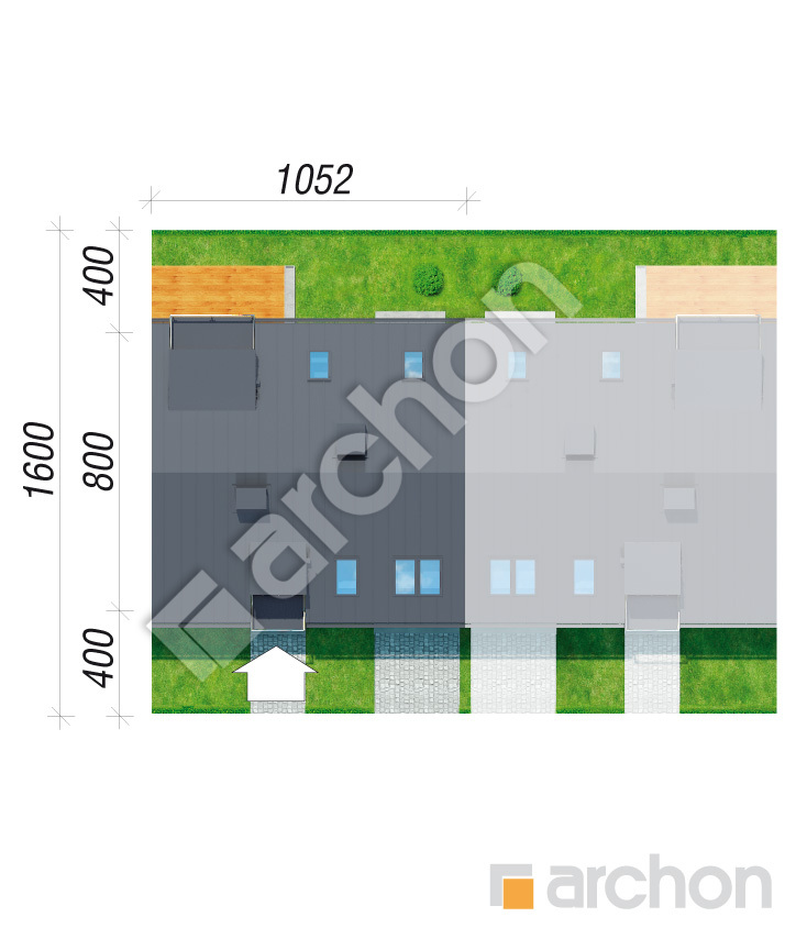 Dla każdego projektu dołączamy obrys budynku w skali 1:500, który można przerysować na kalkę i "przymierzyć" do mapy działki. Mapa przeznaczona do celów projektowych jest wykonana właśnie w tej skali. Odwrócona kalka pozwoli na sprawdzenie ustawienia domu w lustrzanym odbiciu.