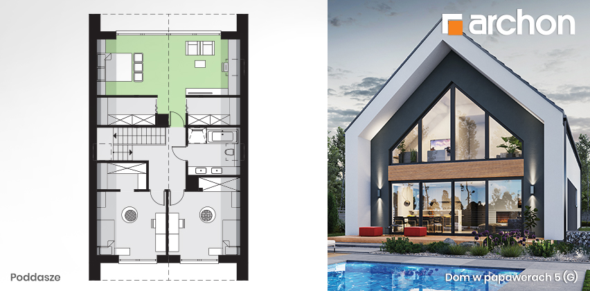 Dom w aurorach 22 (GE) OZE - dom z poddaszem użytkowym z sypialnią na poddaszu